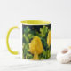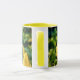 This floral mug features my original photograph of yellow Tulips in a garden. I processed my photograph with an oil pastel painterly style for an artsy flair. The handle and inside of the cup are Yellow to complement the artwork.