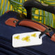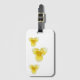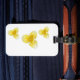 A Single Slotted with Card Slot, =optional, Luggage tag, with a picture of a Yellow Tulip= (3), reduced, and enlarged in size, with the background removed, with a White color Background added. = (Picture by P.J.M.) on the front of it.