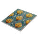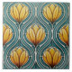 Yellow Tulips on Blue Symmetric Art Nouveau Tile