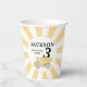Watercolor yellow under construction site trucks birthday boy paper cups.