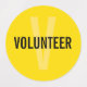 featuring title "volunteer" in black bold sans serif font with light yellow monogram on yellow background.