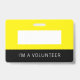 Modern volunteer badge in bold font and bright colours, yellow and black. The badge has a place to write your name. Perfect for crew, staff, trainee, groups and events.