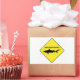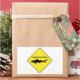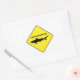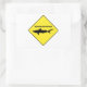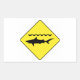 Rectangular sticker with a yellow traffic sign with a 'warning shark' icon.