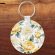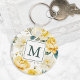Yellow Watercolor Garden Flowers Monogrammed Key Ring