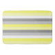 Cheerful shades of yellow, muted greys and white striped bath decor.