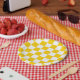 Yellow White Chequered Check Pattern Paper Plate