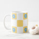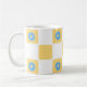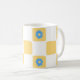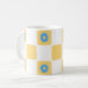 Yellow White Chequered With Blue Flower Pattern Coffee Mug