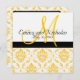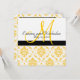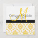 Beautiful Yellow and White Damask Wedding Invitation with monogram on front and wedding invitation text on the back. Shown with sample wording to allow guest's name to be handwritten on the invitation. Also all elements except damask can be customised allowing for colour changes of lines and squares and text. Wedding Invitation Layout Design by Elke Clarke©2010. Graphics licensed. Customise with your wedding information and colours.