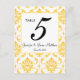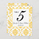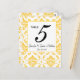 Table Number Cards with white and yellow damask and black accent colours. Layout Design by Elke Clarke©. Graphics licensed. Customise with your information and make one card with each number and add one card per number into our cart. Beautiful yellow and white damask background can be matched up with any colour by selecting "customise it" and then you can change the colour of the text, the frame line and the background box to match your wedding colour scheme.