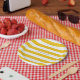 Yellow & White Stripes Modern Striped Personalised Plates.