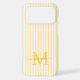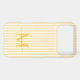 Protect your phone in style with this elegant personalized phone case, designed for a chic and feminine look. Featuring a soft yellow and white striped background, the back of the case showcases your monogram initial and name in a fancy script font, creating a timeless and sophisticated design.