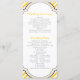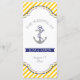 Yellow, white stripes and grey, navy blue anchor nautical wedding ceremony and party program. A stylish striped pattern design with yellow, white diagonal stripes, a grey anchor with a navy blue heart and rope and your text in a frame with a navy blue banner. Contemporary yet with a vintage look in a sense. You can change background and text colour choosing from over 200 colours from Zazzle colour chart. This classy design is a completely customisable template and is part of a wedding set perfect for a summer wedding.
