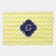 Bright Yellow and White Chevron ZigZag Pattern, Navy Blue Quatrefoil Label Monogram