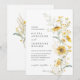 A romantic yellow sunflower and wildflower wedding invitation featuring delicate watercolor florals arranged in an elegant vertical botanical design. Soft golden yellow blooms, airy greenery, and refined typography create a warm garden-inspired aesthetic perfect for spring and summer celebrations, rustic countryside weddings, sunflower themed events, and elegant outdoor ceremonies.