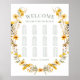 Experience romance and elegance with this refined seating chart poster, adorned with an elegant yellow wildflower blooms wreath. Featuring a total of 12 tables, this poster adds a sophisticated touch to your wedding decor.