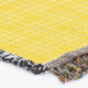 Yellow woven blanket displayed horizontally and vertically, with a subtle grid pattern and fringed edges. The tone is warm and bright, evoking coziness.
