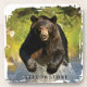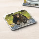 This plastic coaster set is shown with a photo print of a bear running in the river in the famous Yellowstone National Park.