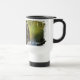 This travel mug is shown with a photo print of a bear running in the river in the famous Yellowstone National Park.