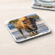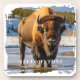 This plastic coaster set is shown with a photo print of a bison in the famous Yellowstone National Park.