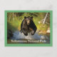 Postcard is shown with a photo print of a black bear running in a river in Yellowstone National Park.