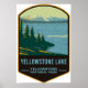 A vintage travel badge design of Yellowstone Lake, the largest body of water located within Yellowstone National Park, Wyoming USA.