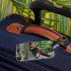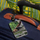 This luggage tag is shown with a photo print of a wild Brown Bear in Yellowstone National Park.