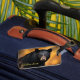 This luggage tag is shown with a photo print of a wild Black Bear in Yellowstone National Park.