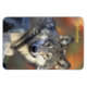 Magnet shown with a photo print of a wild wolf in the famous and beautiful Yellowstone National Park.