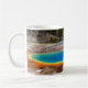 Coffee Mug shown with a photo print of a grand-prismatic spring in Yellowstone National Park.