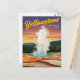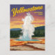 Celebrate the geological wonder of Yellowstone National Park with this dramatic, vintage-style postcard featuring the iconic Old Faithful geyser erupting. The artwork captures the massive burst of steam and water against a colorful sunset sky, highlighting the rich, natural colors of the geothermal features. This travel poster is perfect for nature lovers, park enthusiasts, and collectors of classic WPA-style travel art. Ideal for sending greetings, keeping as a souvenir, or framing as striking wall decor.