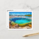 Postcard is shown with a beautiful photo print of the thermal hot pots in Yellowstone National Park.