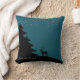 This 16x16-inch throw pillow is shown in a pretty deep colour of teal blue known as dragonfly; it has silhouettes of rocks, tall fir trees and an elk standing beneath the starry night sky. Reminds you of the night you just laid there in Yellowstone and looked up at all those stars, breath taking! Text of Yellowstone written in grey near bottom. Backside is of same teal colour with grey stars on the half-angled.
