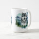 This lovely coffee mug is shown with a Yellowstone wolf watercolor art print.