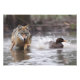 Photo print is shown with a wild wolf chasing a duck in Yellowstone National Park.