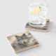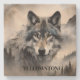 Sandstone coaster is shown with an art print of a wolf in Yellowstone Park.