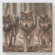 Sandstone coaster is shown with a photo print of a wild wolf pack in Yellowstone Park.