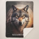 This sherpa throw blanket is shown in a photo print of a wolf.