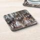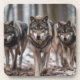 Coaster set is shown with a photo print of a wolf pack in Yellowstone Park.