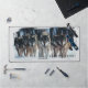 This desk mat is shown with a photo print of wolves in the famous Yellowstone National Park.