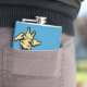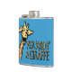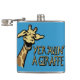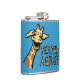 Illustrative and typographic slogan hip flask in yellow, black and brown giraffe tones. Reads: Yer 'Avin' a giraffe. Originally a Cockney London / Essex, English saying used for laugh, hence I decided to get my giraffe to laugh to make the more literal point. However this was certainly a challenge to draw as it appears that giraffes don't really laugh, so I had to use a little artistic license! Original graphic art design by Sarah Trett.