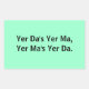 Yer Da's Yer Ma, Yer Ma's Yer Da: Stickers, with Black-lettering on Blue Background.