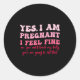 Yes I Am Pregnant I Feel Fine Funny Pregnancy New Classic Round Sticker