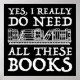 Yes, I Really Do Need All These Books. Funny book lover accessory is a great gift for someone who loves books, reading, libraries, book shops and book stores. Perfect for a librarian, book nerd or bibliophile. Are you a bookaholic? Do you love to read literature and novels in a library or a used book store? Are you an insatiable reader? If you're a geek about books, this funny book quote design is for you!