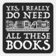 Yes, I Really Do Need All These Books. Funny book lover accessory is a great gift for someone who loves books, reading, libraries, book shops and book stores. Perfect for a librarian, book nerd or bibliophile. Are you a bookaholic? Do you love to read literature and novels in a library or a used book store? Are you an insatiable reader? If you're a geek about books, this funny book quote design is for you!