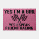 Yes I'm A Girl, Pink Racing Doormat