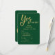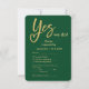 This elegant emerald green and gold wedding design features the phrase “Yes we do!” with the word “Yes” written in a romantic gold script — the sweeping Y cleverly incorporates a heart shape, symbolising love and unity. The minimal chic layout combines bold modern typography with timeless gold accents, creating a luxurious look perfect for formal events, emerald green tie celebrations, or evening weddings. The names are displayed in graceful calligraphy, adding a touch of personal charm to this sophisticated stationery.