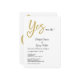 This elegant white and gold wedding design features the phrase “Yes we do!” with the word “Yes” written in a romantic gold script — the sweeping Y cleverly incorporates a heart shape, symbolising love and unity. The minimal chic layout combines bold modern typography with timeless gold accents, creating a luxurious look perfect for formal events, white tie celebrations, or evening weddings. The names are displayed in graceful calligraphy, adding a touch of personal charm to this sophisticated stationery.