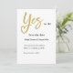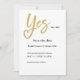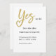 This elegant white and gold wedding design features the phrase “Yes we do!” with the word “Yes” written in a romantic gold script — the sweeping Y cleverly incorporates a heart shape, symbolising love and unity. The minimal chic layout combines bold modern typography with timeless gold accents, creating a luxurious look perfect for formal events, white tie celebrations, or evening weddings. The names are displayed in graceful calligraphy, adding a touch of personal charm to this sophisticated stationery.