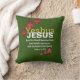 YESHUA JESUS Christian Christmas Throw Pillow with faux red glitter baubles design. YESHUA is written in faux gold typography, against a rich GREEN background. The Scripture verse is John 1:14 - THE WORD BECAME FLESH. The phrase and Scripture reference are CUSTOMIZABLE, so you can replace with your own choice of text. This would be a great Christmas gift for Christians and Messianic Jews. Matching gifts available.
