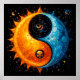 Artistic depiction of a yin-yang symbol with vivid sun and moon motifs, symbolising harmony and duality.